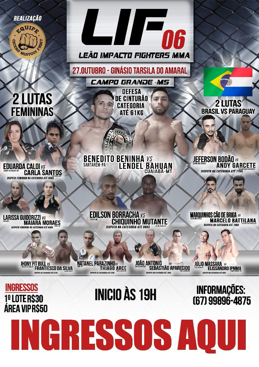 Será realizado no dia 27 de outubro na cidade de Campo Grande , Mato Grosso do Sul á sexta edição do Leão Impacto Fighters MMA.